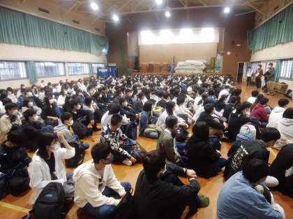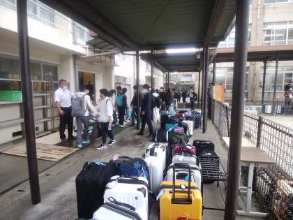 雨でしたので武道場に集合。いくつか連絡ののち、出発しました。天気は回復傾向です。これからも楽しみです。