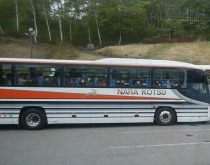 朝食後、前半クラスは体験活動別のバスでそれぞれの体験場所へ、後半クラスはクラスのバスでラフティングに出発。まだ目覚めていないような生徒もいますが、全員バスに乗ってます。