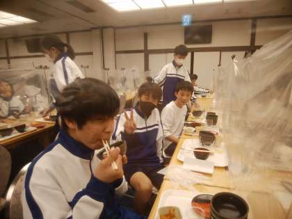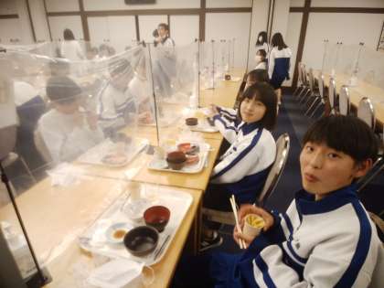 今日は1組と後半クラスが先に食べています。いっぱい活動したので、とっても美味しく感じるでしょうね。