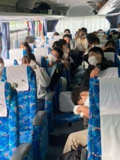先頭2.3号車は瀬田東通過。車内は、代議員さんの企画の学級レクも大成功!美化委員さん作成のCDも流れると一緒に歌う人も。京都に帰りた