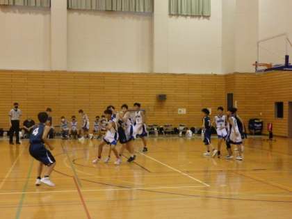 1回戦、接戦を大逆転で突破した男子バスケットボール部。この日は、京都市体育館のサブ会場で2回戦に臨みました。試合は、1回戦の勢いが止まらない感じでの快勝でした。おめでとうございます。明日は京都市体育館のメイン会場です。スタンドから応援します。頑張れ!
