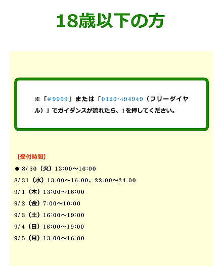 電話で相談したい方は下記の部分をクリックしてください。なお9月5日(月)16時までが試行期間になっています。