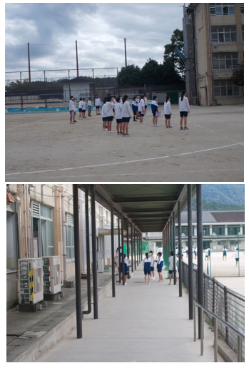 しかし感染対策を講じなければなりません。普通教室・特別教室・廊下・渡り廊下・体育館・武道場,そしてグランドなど学校内のありったけの施設をフル活用して密を防ぎ,換気を徹底しています。