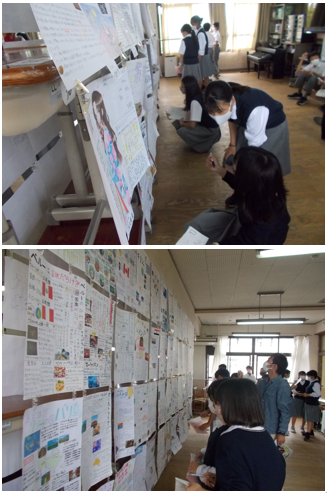 本日文化祭1 展示の部を実施しました。感染対策のため,分散登校で,各クラスごとに各会場の展示を鑑賞しました。