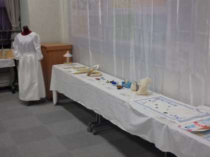 その1階と地階の展示スペースには、本校家庭科部のみなさんの作品と、社会科でつくった新聞が展示されていました。とてもいい作品で、とても輝いて見えました。「洛北文化ここにもあり」と言う感じでした。
