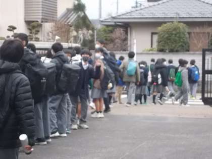 1年生の3クラスが、たった今、科学センターに向けて出発しました。残るクラスの1年の先生方に見送られて、とても楽しそうです。