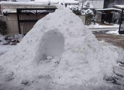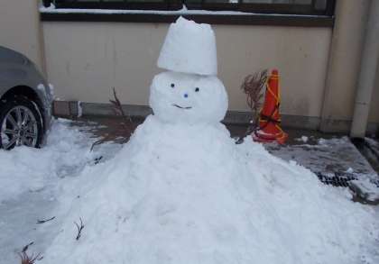 昼休み、点検を兼ねて校舎周りを見ていると、いつの間に作ったのか。3つの作品がありました。聞くと雪だるまは、1組の皆さんが1時間目の体育の授業中に作った、とのことでした。