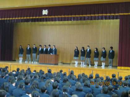 次に、前回の全校集会後に受けた多くの賞の伝達表彰がありました。そして、生徒会会長の話などがありました。