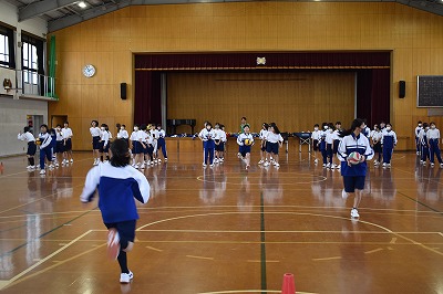 1年5組・6組・7組女子の体育の授業の様子です。