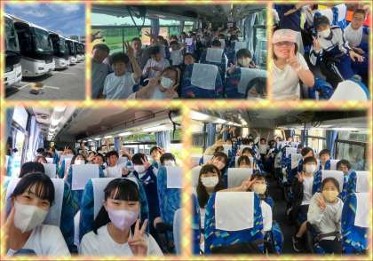 那覇空港を出発し、ビーチと体育館に向かって移動しています。移動のバスの中では、修学旅行実行委員会が一生懸命企画してくれた「ビンゴ大会」を楽しんでいます。