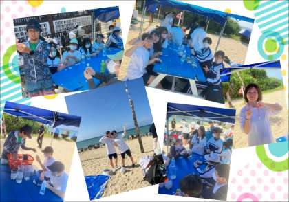 マリンクラフト体験では、砂浜で選んだお気に入りの珊瑚で、ネックレスを作りました。完成した作品を身につけ、美しい海を背景に記念写真を撮りました。素敵な思い出ができました。
