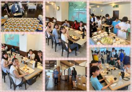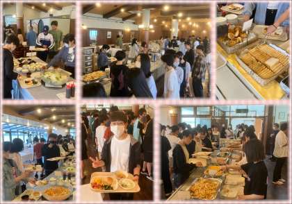 2日目の朝食は、バイキングでした。美味しい朝食をたくさん食べて、今日もみんな元気です。朝食後にはホテルの退館式があり、代表の生徒がホテルの方々に感謝の気持ちをお伝えしました。
