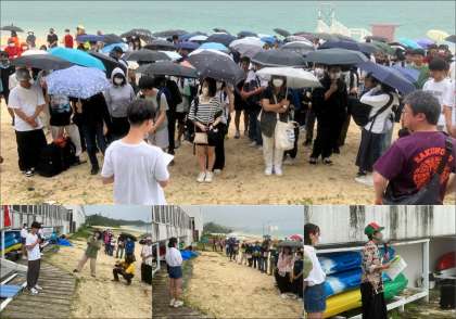 ビーチで入村式を行いました。今日からお世話になる民泊の方々との出会いです。どうぞよろしくお願いします!