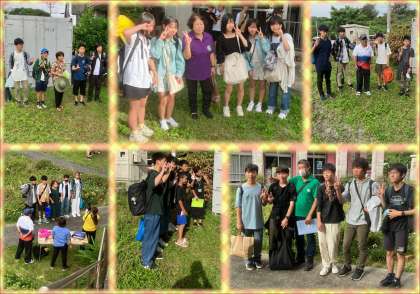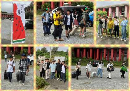 それぞれの民泊先から、退村式を行う今帰仁総合運動公園広場に、生徒たちが到着しました。お世話になった民泊先のご家族と、記念写真を撮影しました。