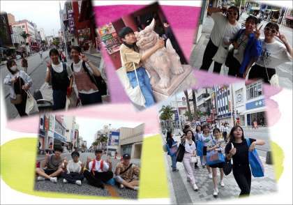 国際通りで、沖縄の街を満喫しています。