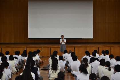 総まとめとして代表生徒から、学年主任の吉村先生から話があり終了しました。2学期の最大の行事である学校祭で3年生のしっかりとした姿を見せようとありました。また、それぞれの進路獲得に向けて、やるべきことをしっかりやること、自分で情報を集め、自分の目で確かめることが重要とも言われていました。