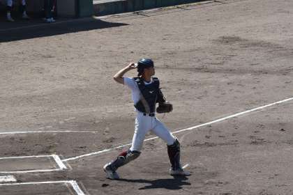 序盤はピンチの連続でしたが落ち着いたプレーでなんとか3回まで0点に抑えチャンスを待ちます。しかしながら、相手投手も今大会注目の左腕投手。3回まで一人のランナーも出すことができず、0−0で試合が進みました。
