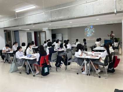 日常社会の中でみられるデザインと、その創作の仕方や、作品鑑賞から、作品づくりのアプローチの仕方、作品づくりの考え方など、話合い活動をしながら、学びました。その後、京都芸術大学の各学部を見学して回りました。