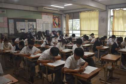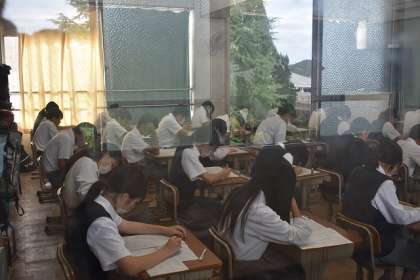 最後の1分、1秒まで問題用紙を前に全力を尽くしています。