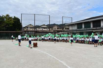 初めてグランドで3つの色が揃って応援練習をしました。