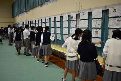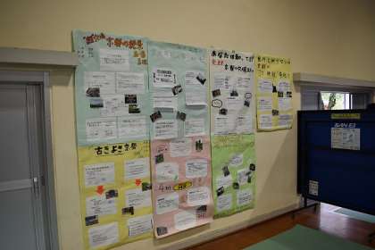 2年生、3年生の総合的な学習の時間で取り組んだ成果物と美術の授業で制作をした作品が展示されています。