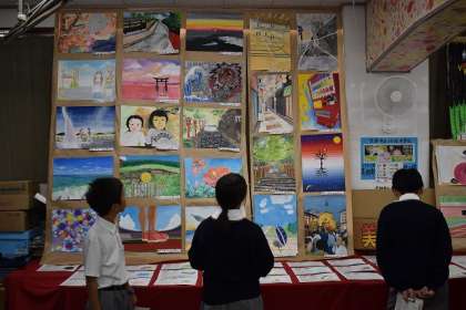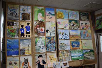 美術室には、1組生徒の作品、数学科、美術部の作品が展示されています。
