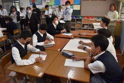 2つのグループに分かれて考えましたが、たくさんの意見が出て盛り上がりました。他の中学校の先生方からもよく考えられている。気持ちを大切にする生徒ばかりで、本当にやさしい生徒たちですね。と感心されていました。