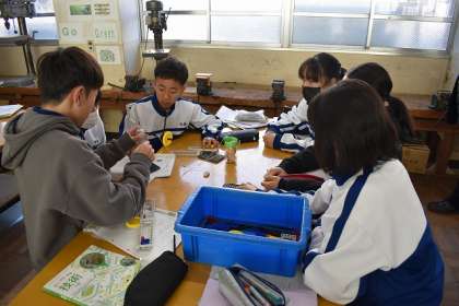 エレベーターに見立てた実験道具を使い、20センチ引き上げる、引き下げるのに要する時間を計測し、安全にかつ乗り心地のよいエレベーターを作るにはどうしたらよいのか班で意見を出し合い考えました。