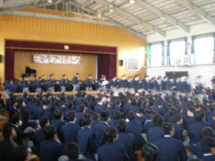 3月15日の卒業式には1・2年生全員が参加できないため、全校生徒が集まる最後の機会で、卒業していく3年生との別れを惜しみました。