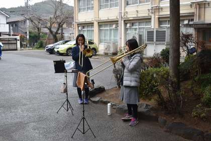 吹奏楽部の部員たちも教室が使えないので工夫しながら練習に取り組んでくれています。
