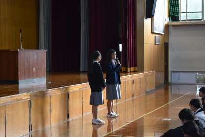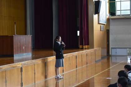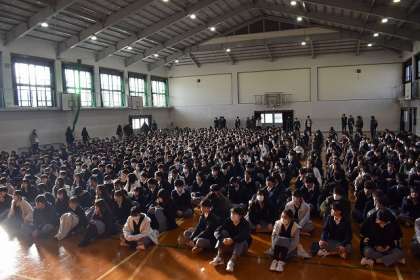 新年に立てた目標(夢)を実現するために、精一杯の努力と実践をしてください。そして、3年生は進路実現に向けて一日一日を大切にしながら強い気持ちを持って取り組んでください。1年生、2年生は今の学年の締めくくりの学期として3か月間を何事にもしっかりと取組、自信をつけて次の学年にジャンプアップしてほしいと願います。