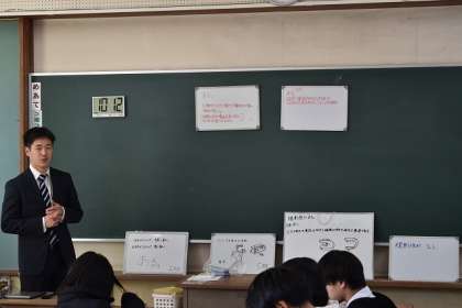 初めにテレビが映らず焦りましたが、2年2組の応援のかいもあって無事、授業が進めることができました。「フレミングの法則」についての学習でしたが、班活動に入ると活発な意見も飛び出し楽しい1時間となりました。