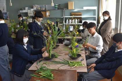 お互いにどの花材をどこに生けようかと相談なしながら、イメージを膨らませて作業に集中していきます。