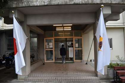 登校してきた新入生の誘導を本部役員と教職員で行っています。