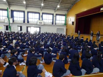 2年生は部活動や生徒会活動など、徐々に学校生活の中心を担っていく1年間となります。また、本校の2年生は全市の2年生の中で1番人数が多いのですが、人数だけでなく「京都で1番”情”のある学年」になってほしいという学年教員の思いも話しました。
