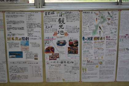 一人一人が沖縄について、事前学習で調べた内容について書かれたポスターが掲示されています。すごく丁寧に作成されています。