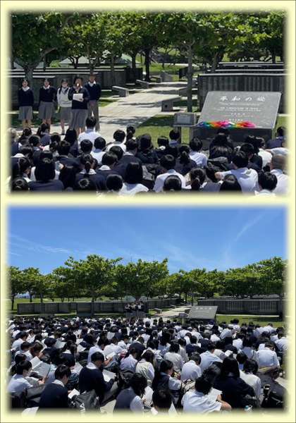 沖縄戦などで亡くなられたすべての人々のお名前を刻んだ記念碑「平和の礎」を見学し、平和セレモニーを行いました。