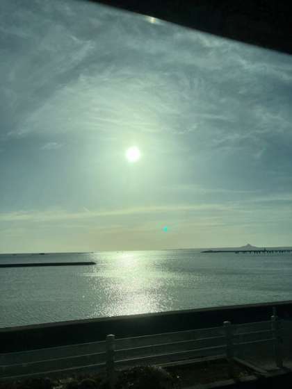移動中に、バスの窓から見えた美しい海と夕日です。