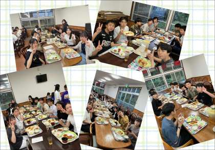 夕食は、バイキング形式です。好きな料理をたくさんお皿に盛り、おなかいっぱい食べました。