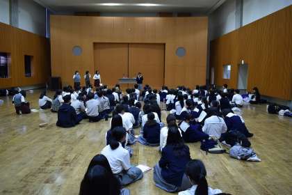もう一つの嬉しいことは、卓球部が京都府卓球大会で見事に「団体優勝」を果たしました。おめでとうございます。この大会には、京都府・京都市から約50校のチームが参加して行われました。その大きな大会で優勝することができました。
