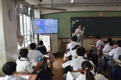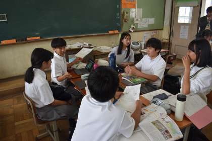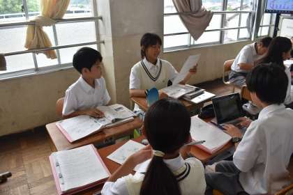 単元は、「世界の諸地域 ヨーロッパ州 EUが抱える課題」についてでした。2つの資料から読み取れることをまとめ、自分の考えを班員に発表しグループで話合いました。