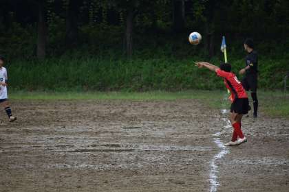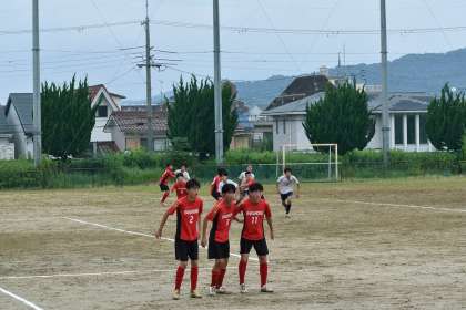 勝負は後半に託されました。先制をしたのは樫原中学校でした。後半10分、コーナーキックからの競り合いの中でクリアしたボールが止まってしまい、そこをつかれ押し込まれてしまいました。