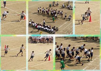午前中に、1〜3年生が縦割りで競う種目を3種目行いました。