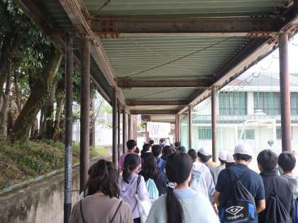 午後1時30分の開会式に向けて、各小学校の6年生が続々と洛北中学校に来てくれました。