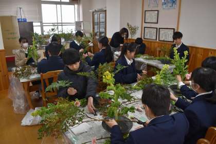 遠州流 宗家 芦田一馬先生、芦田一春先生の指導を受け「いけばな」に挑戦しました。