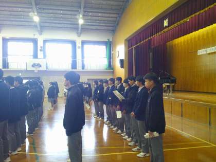 3年生の卒業式の学年合唱練習では各パートの合わせ練習を行っています。