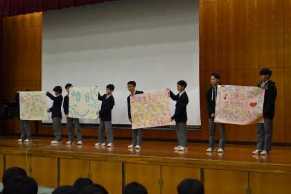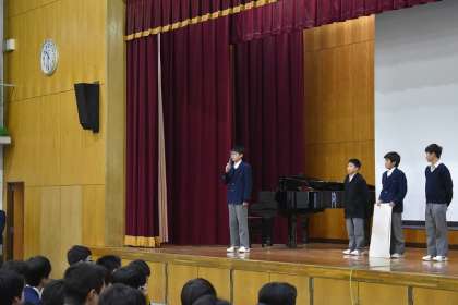 お世話になった3年生へ、激励と感謝のメッセージが書かれた掲示物を披露してくれました。学年フロアーにこのあと掲示してくれます。