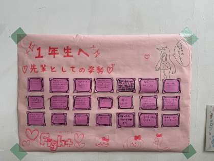 3年生からも後輩たちへ、期待を込めた応援メッセージが掲示されています。