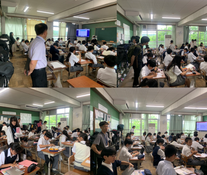 1年生が6年生の時に習った先生方やそれぞれの小学校の校長先生が本校に来校され、授業を参観されました。(これを先生たちの間では小中連絡会と言っています。)