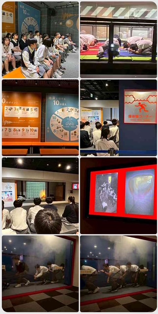 消防庁です。地震、煙体験を通じて災害の怖さとそれに対する備えを学んでいます。